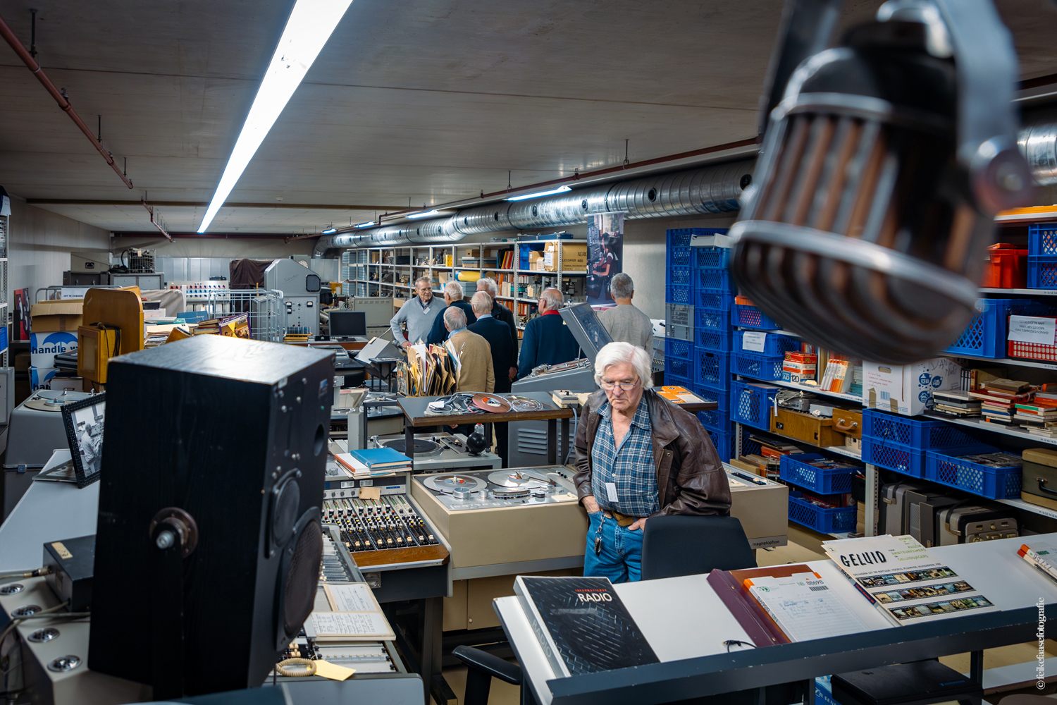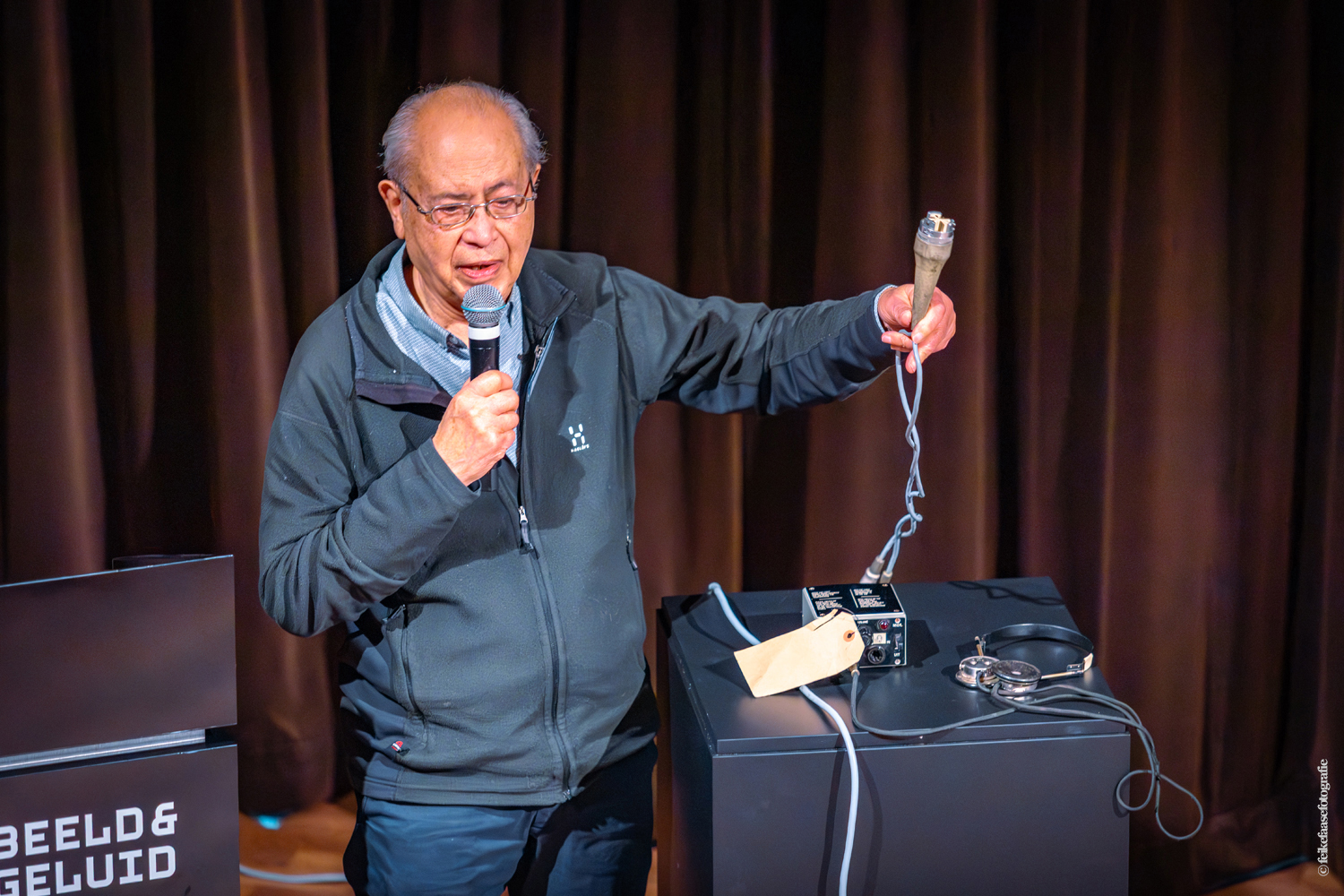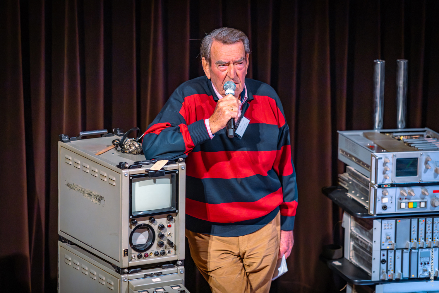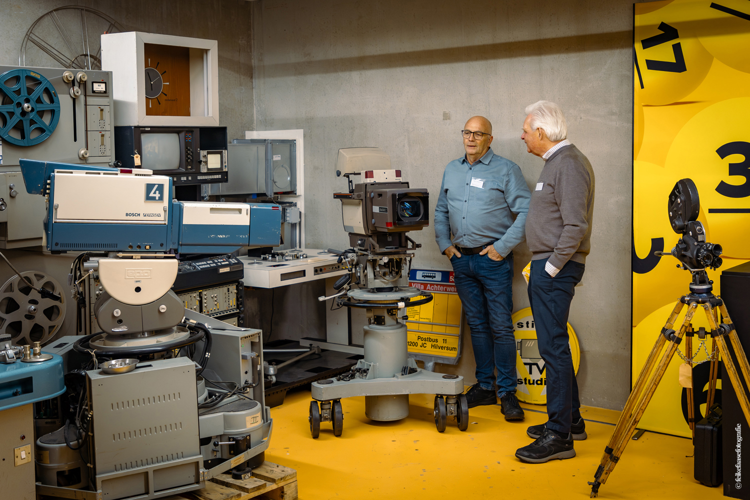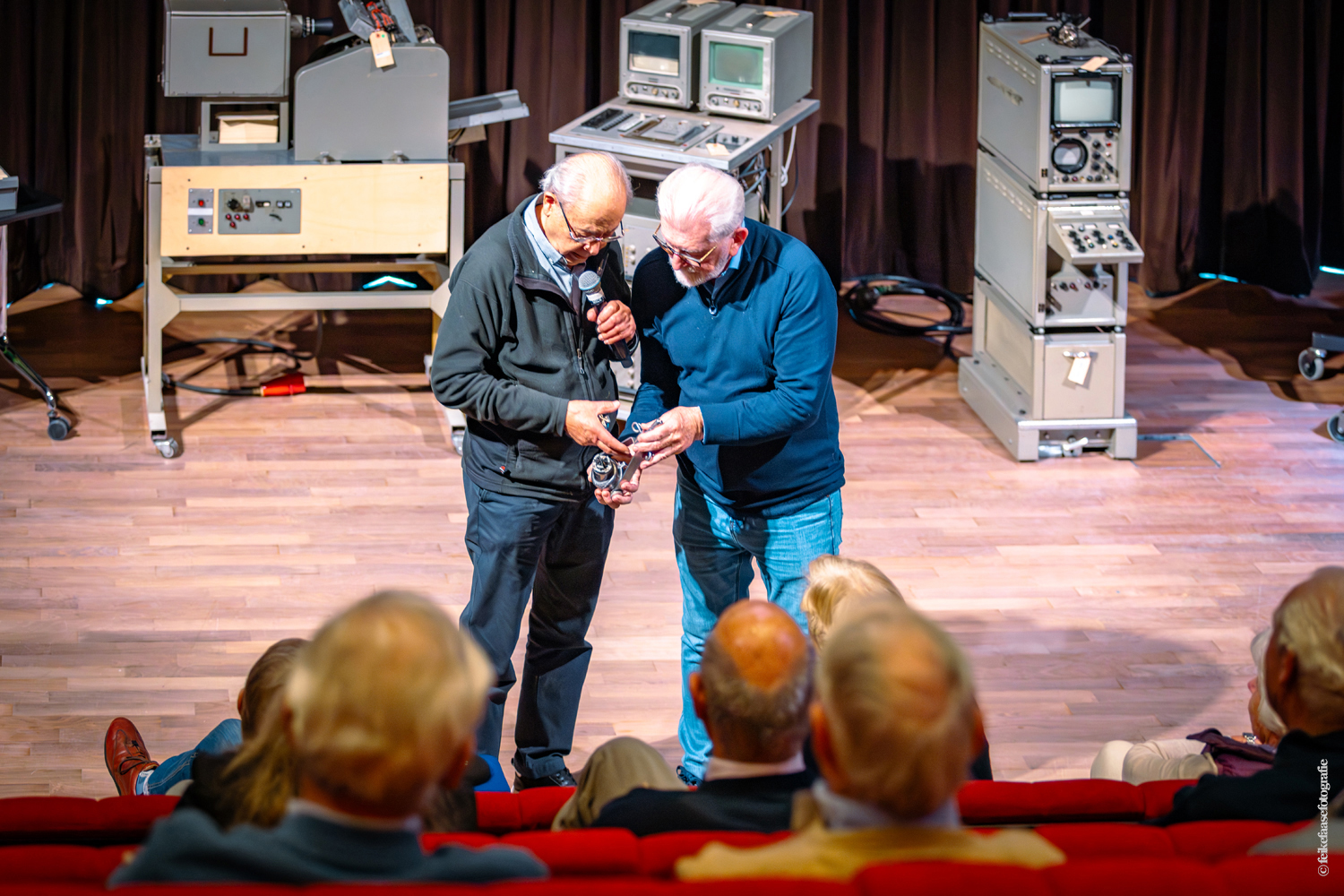Ben Rekker was het eerst aan de beurt en vertelde interessante zaken over de bedienpositie van de shaders in de zwart-wit tijd. Hierna liet Carel Sarton zijn licht schijnen over de sico kast, die voor commentatoren werd gebruikt; de Universeel plug en de luidsprekerzuil, zoals die voorheen bij televisie opnamen en uitzendingen gebruikt werd om het geluid uit te versterken.