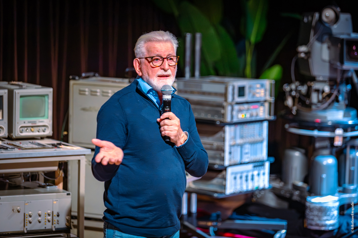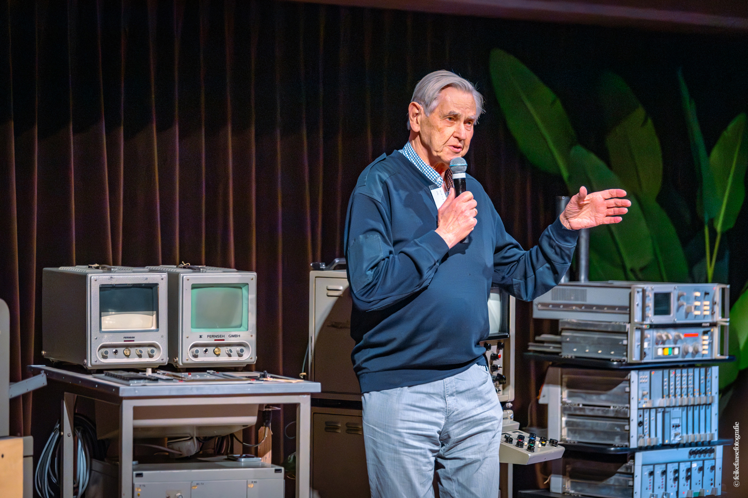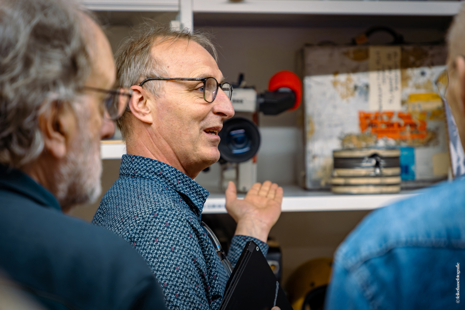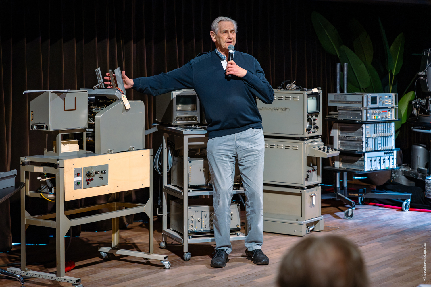 Ben Rekker was het eerst aan de beurt en vertelde interessante zaken over de bedienpositie van de shaders in de zwart-wit tijd. Hierna liet Carel Sarton zijn licht schijnen over de sico kast, die voor commentatoren werd gebruikt; de Universeel plug en de luidsprekerzuil, zoals die voorheen bij televisie opnamen en uitzendingen gebruikt werd om het geluid uit te versterken.