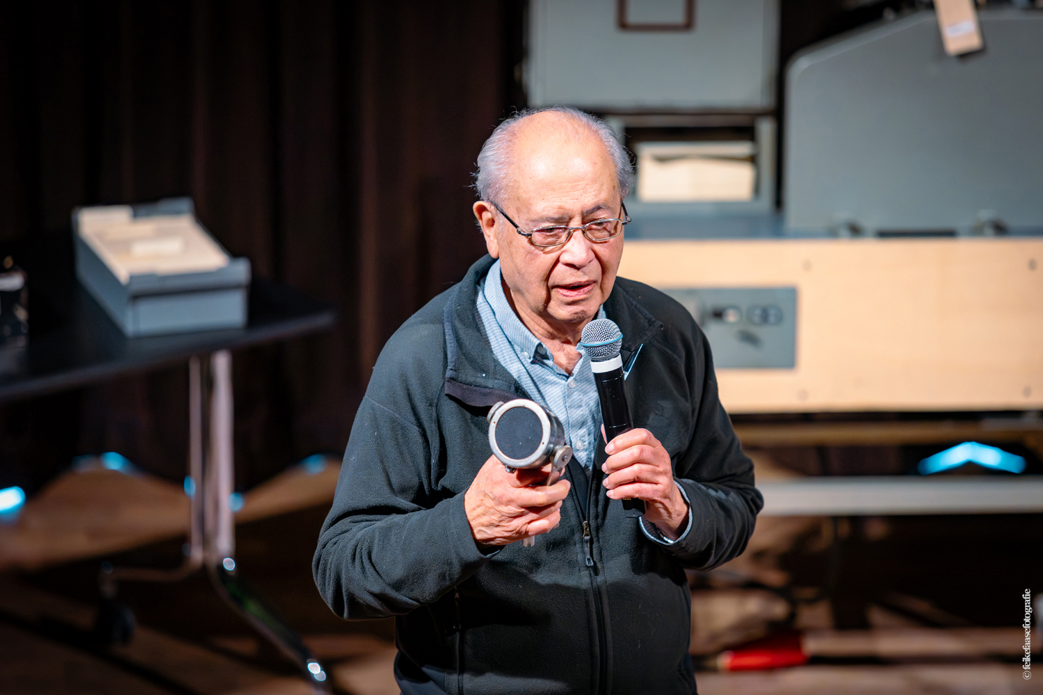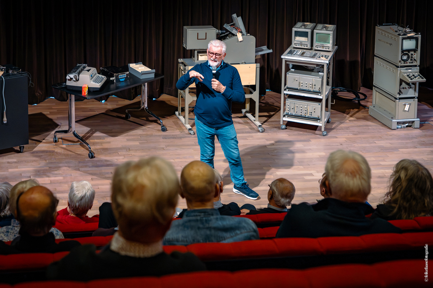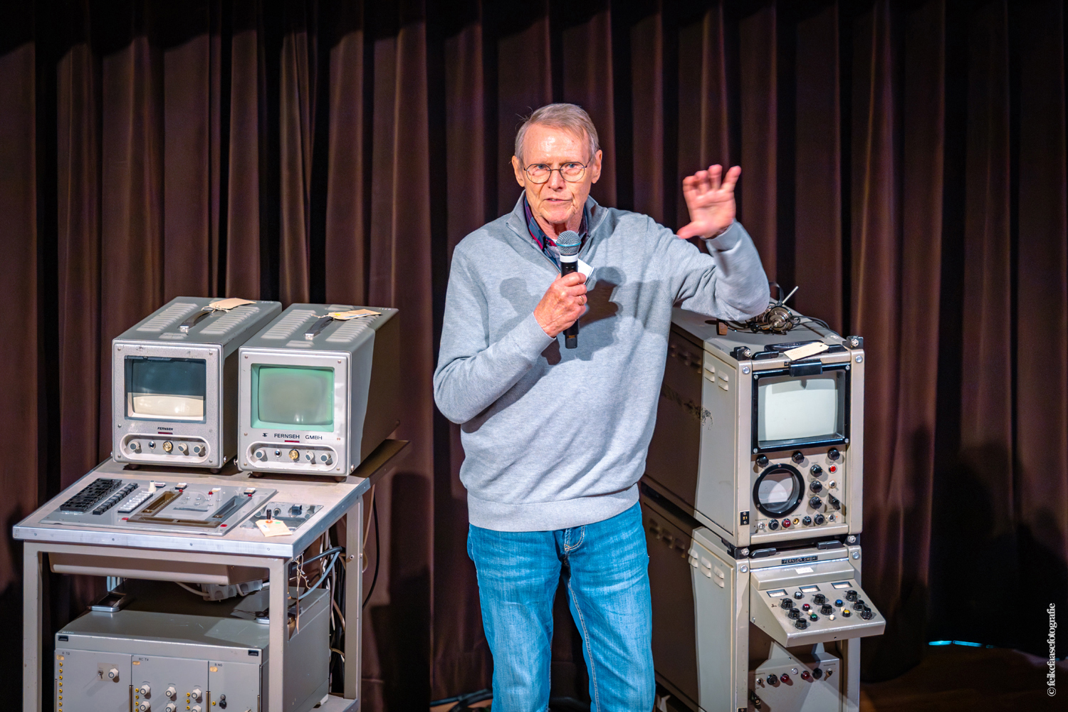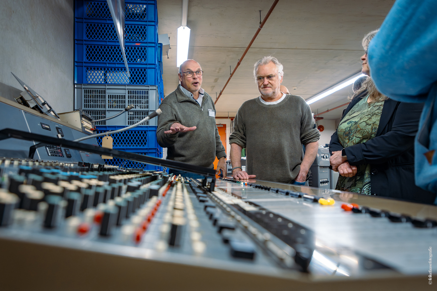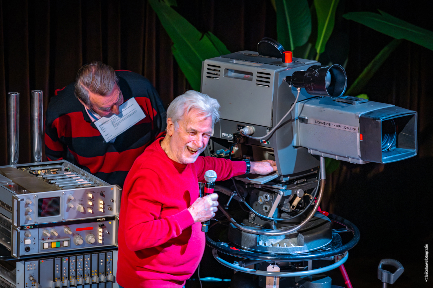 Ben Rekker was het eerst aan de beurt en vertelde interessante zaken over de bedienpositie van de shaders in de zwart-wit tijd. Hierna liet Carel Sarton zijn licht schijnen over de sico kast, die voor commentatoren werd gebruikt; de Universeel plug en de luidsprekerzuil, zoals die voorheen bij televisie opnamen en uitzendingen gebruikt werd om het geluid uit te versterken.