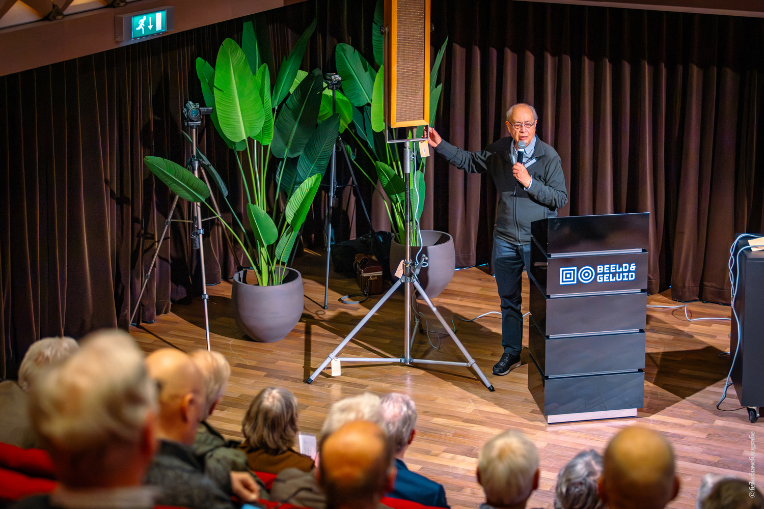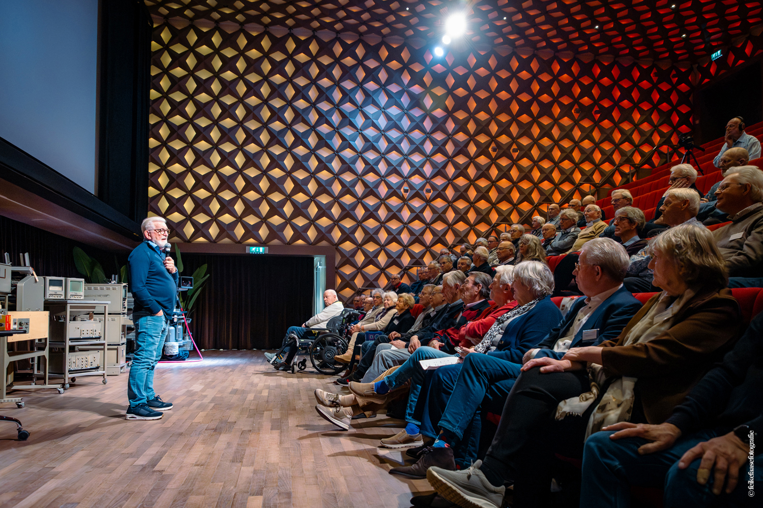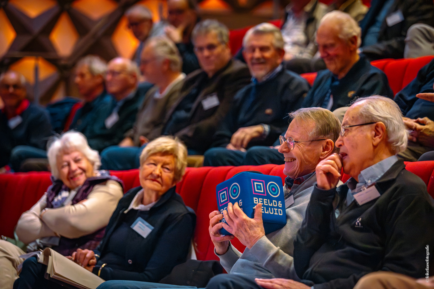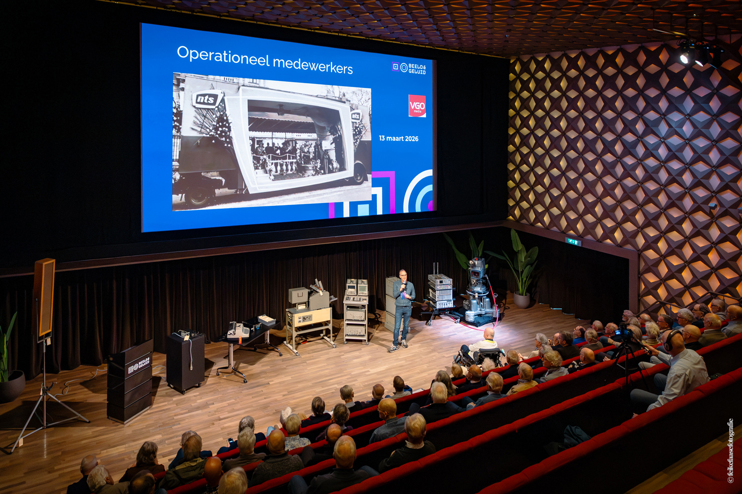 De grote theaterzaal was de plek waar de bijeenkomst begon. Hella Liefting van VGOmedia deed het welkomstwoord en Bas Agterberg van Beeld en Geluid gaf aan hoe het verloop van de middag zou zijn.