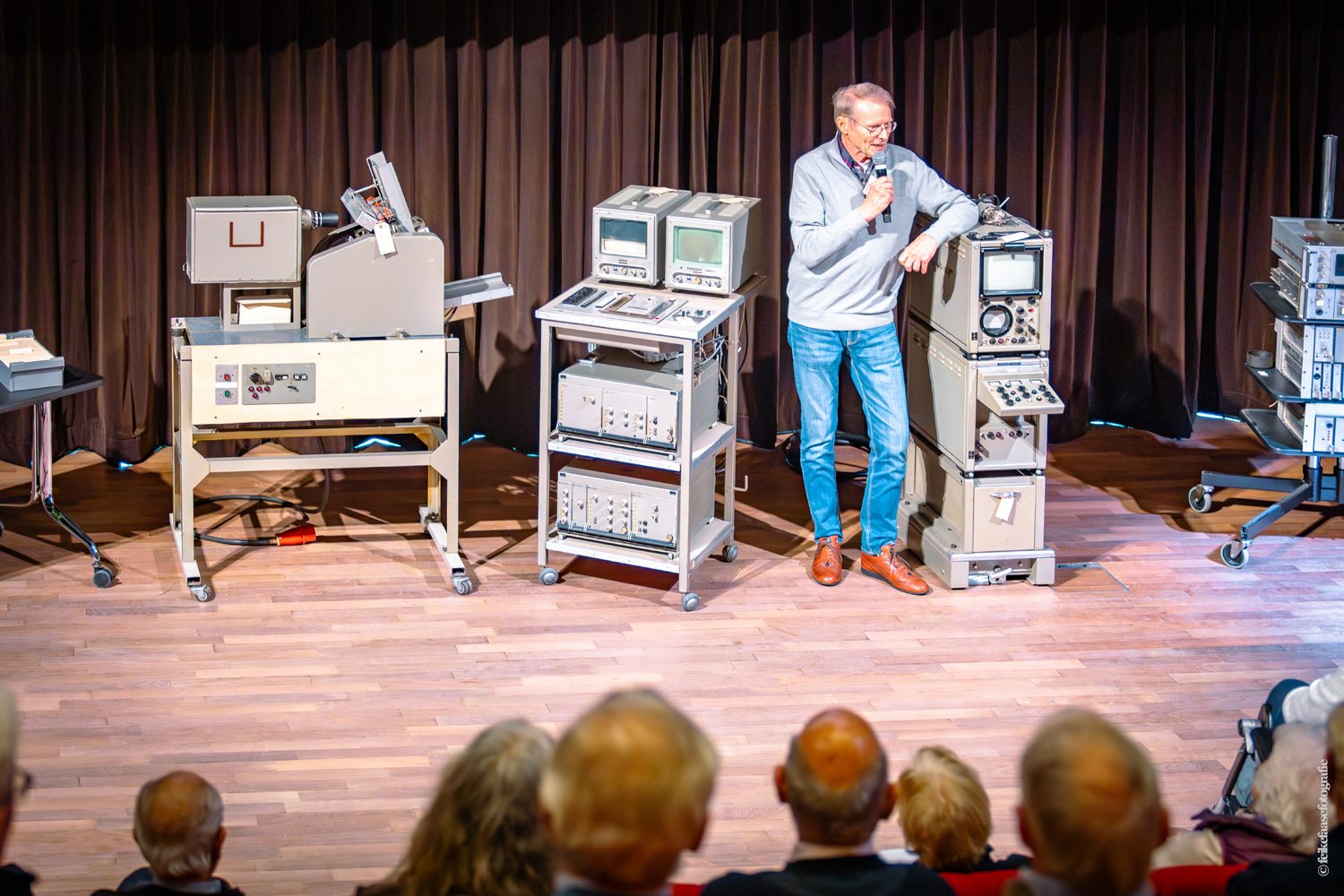 Wim van den Broek had leuke verhalen over het titelapparaat, dat destijds gebruikt werd om documentaires en films van ondertitels te voorzien. Tot slot gingen we over naar kleurentelevisie en deelden Gerrit Meutstege en Bart Doets hun kennis en anekdotes over de Philips kleurencamera LDK3.